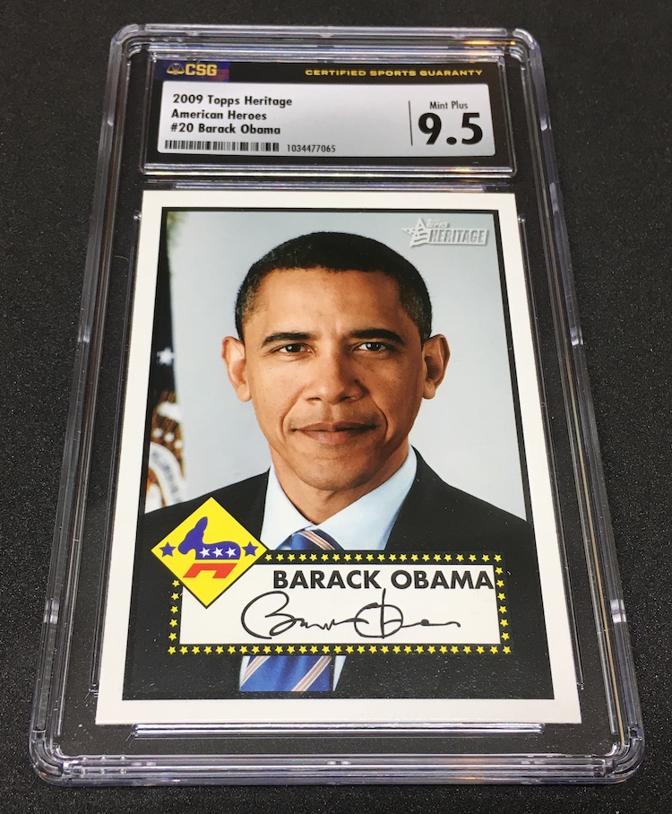The Reason Graded: There was a big wave of cardboard in the wake of his historic election -- American Heritage sets from Topps as well as his own set for starters -- and this was one of a couple cards that put him on a card in the 1952 Topps design. This one is merely a base card from the 2009 set while another one -- with arguably a lesser photo -- was an insert. When I saw that CSG was slabbing cards from this set -- since it has some sports-adjacent figures it perhaps qualifies as multi-sport -- I did a quick look at what I had and this one presented itself.