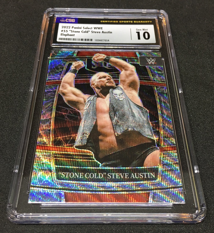 The Card: "Stone Cold" Steve Austin 2022 Panini Select WWE Elephant parallel