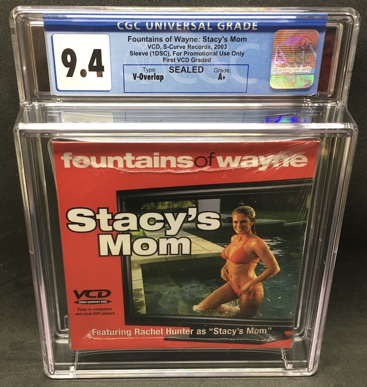 The Reason Graded: Here's something way different and a first for me -- as well as a first for CGC, which started grading DVDs, VHS, DVDs and other similar items not that long ago. More often than not, Buzz puts on MTV Classic for background noise while working and this quirky hit (some origin/background on the song/video here) literally still has daily rotation (if not heavy rotation) on that channel. That led me to wonder what "stuff" of any kind might exist on eBay for this near one-hit wonder and I found this sealed promotional video compact disc as part of a small lot. While the other CDs from the band were used and abused, this was super clean and never opened ... so this $2 buy struck me as a unique item to try as part of my first CGC Home Video grading sub. What makes this interesting? Supermodel Rachel Hunter, who was the star of the video which has nods to movies as well as odes to a favorite band of the band, does not appear on the CD releases here (CD single or album). So ... this promo disc appears to possibly be it for the cheeky video's merch showing her. (I can't say 100-percent as it's not my main collecting realm but it looks like that's the case.)