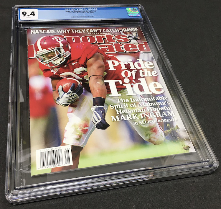 The Reason Graded: I'm not a huge fan of graded SI magazines that are newer but that's mostly because they can be so skinny that they feel like they aren't laying flat in their slabs ... but I made an exception for the first Alabama Heisman Trophy winner's first cover. This one was a recent return for me after a batch that was out for more than a year and I figured it was clean enough to get slabbed ... but I didn't bother getting it pressed. (That's likely the difference between this and a higher grade here.)