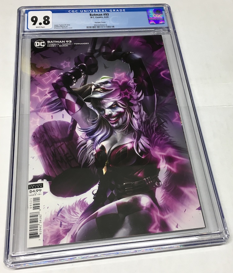 The Reason Bought: If you checked out a recent Buzz Break of some DC/IDW comics repacks here on The Buzz, then you saw this comic -- a cardboard stock art variant -- pop out of one where it cost me mere pocket change. It's a striking cover with Harley Quinn half-wearing a Joker mask about to lay the smackdown on, well, you. My copy from the repack had a small issue on the back cover, so I knew that one was not going to be slabbed ... but curiosity got me looking.