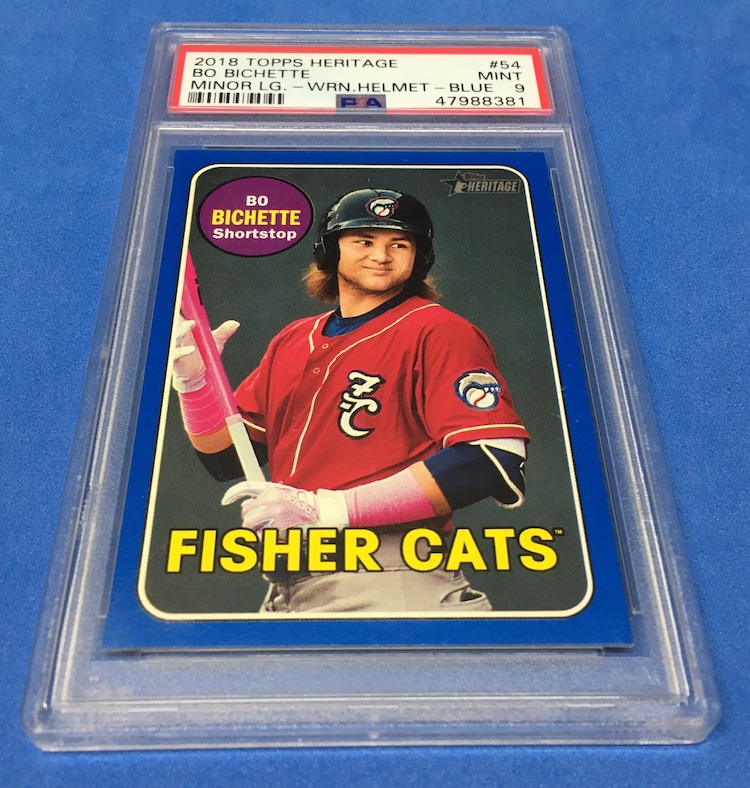 The Card: Bo Bichette 2018 Topps Heritage Minor League Blue parallel (/99)