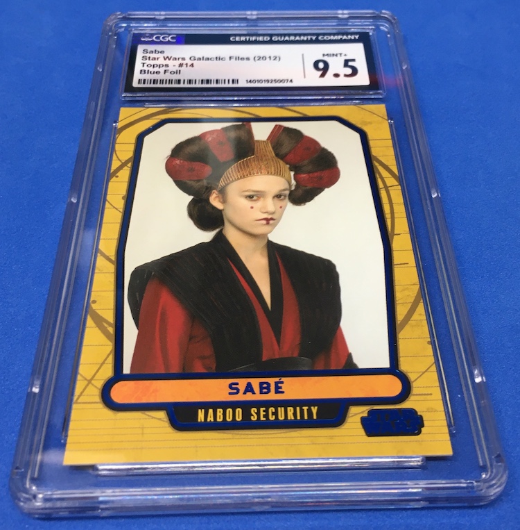 The Card: Sabé (aka Keira Knightley) 2012 Topps Star Wars Galactic Files Blue Foil parallel (/350)