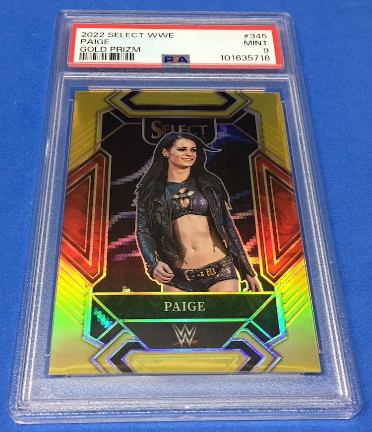 The Card: Paige 2022 Panini Select WWE Gold Prizms (/10) -- rarer Mezzanine tier