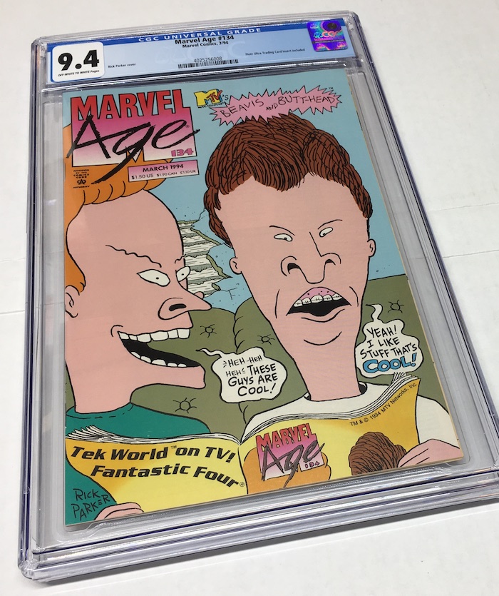 The Reason Bought: The dynamic duo of the 1990s is back on TVs and I picked up this book as well as another one of note -- but not in the highest marks -- just to have them. Those higher grades have some surprisingly high prices right now and interesting pops, too, as this book and the other probably weren't high-circulation titles back then. This one, should be for sure, as it was more of a Previews-style comic that previewed upcoming projects from Marvel. This was near the end of Marvel Age's 140-issue run, so that, too, should indicate not that many made. This one teases a Beavis & Butt-Head title to come, of course. I passed on both back in the day as I had likely come and gone from comics and back harder into chasing autographs in card packs. (I did comics as well as cards for a time but comics were far cheaper to collect then price-wise until ink started showing up more often.)