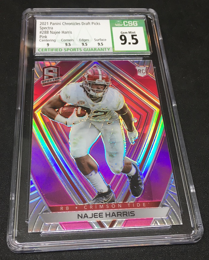 The Card: Najee Harris 2021 Panini Chronicles Draft Picks Spectra Pink -- Rookie Card parallel