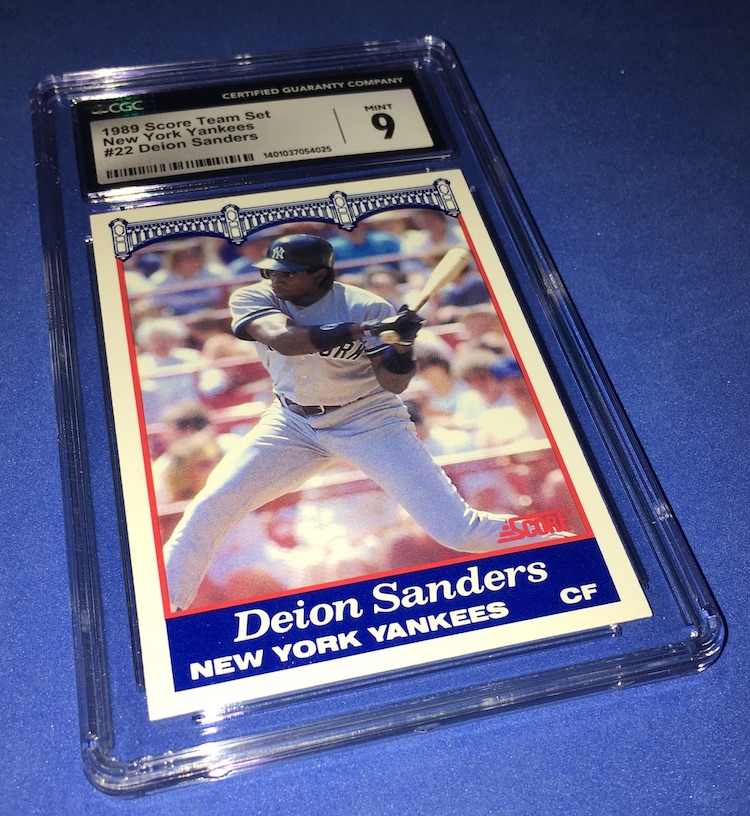 The Reason Graded: It's college football season, so I figured I'd rep the here and now with a throwback ... but one with a n0t-obvious twist. Yes, Coach Prime has plenty of cards -- MLB and NFL -- but somehow I'd never seen this one until this year despite actively collecting all this time. Score apparently created this set for the regional bank chain and included this Yankees newcomer, which is a little odd as he wasn't in a Score baseball set until 1990. I knew this wouldn't be the easiest grade knowing the stock type and typical packaging, but I rolled the dice figuring an oddball RC-year card would at least still be more interesting even if it was a grading miss.