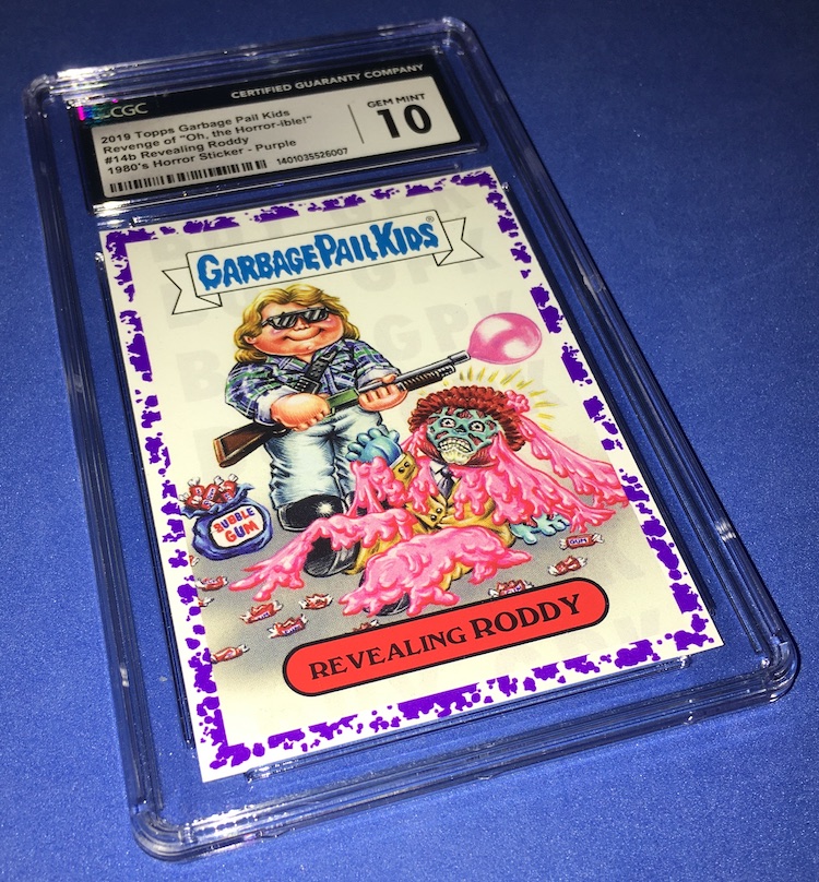 The Card: Revealing Roddy (Roddy Piper in They Live) 2019 Topps Garbage Pail Kids Oh The Horror-ible! Purple parallel