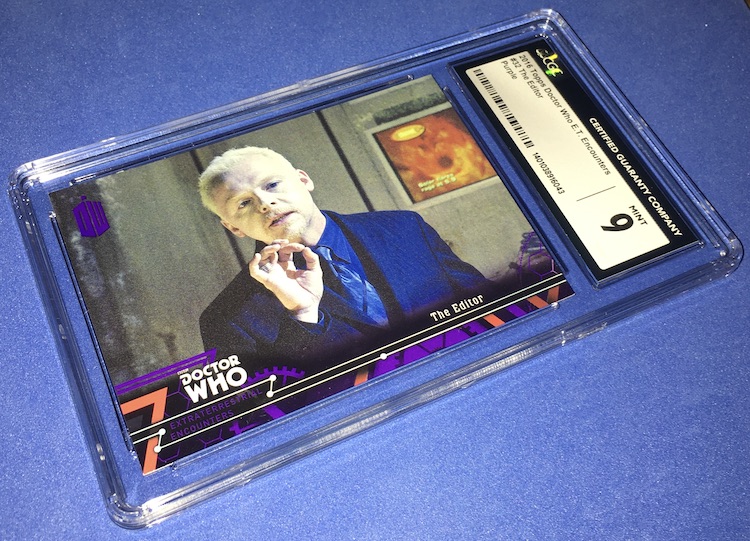 The Card: The Editor (Simon Pegg) 2016 Topps Doctor Who Extraterrestrial Encounters Purple parallel (/50)