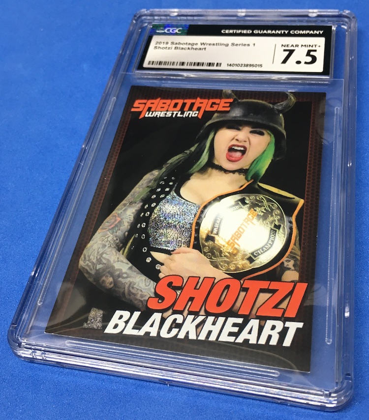The Reason Graded: As I mentioned last month, I landed both Blackheart cards from this set last year -- a "YOLO" kind of raw-card buy around my birthday for a steep, steep price from the company that originally made them for the indy promotion. (At this price, I could have bought 40 sets at their original price ... had I known they existed and that would have landed 80 of her cards.) Those were not cheap and they were bummers. This one? I knew it wasn't gonna be an elite-mark winner, either, with some minor corner funk and, more importantly, with the back edges of these cards being very chippy. (That was why I never graded this one despite landing it even before the others.) Since I had them all sitting together, I subbed them for grading all at the same time ... I figured this copy would have looked better than the others because, well, it is, and maybe checked in a smidge higher just by comparison.