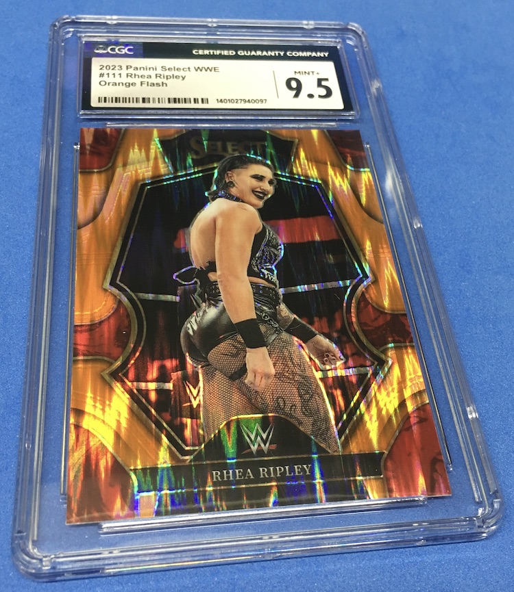 The Card: Rhea Ripley 2023 Panini Select WWE Orange Flash parallel
