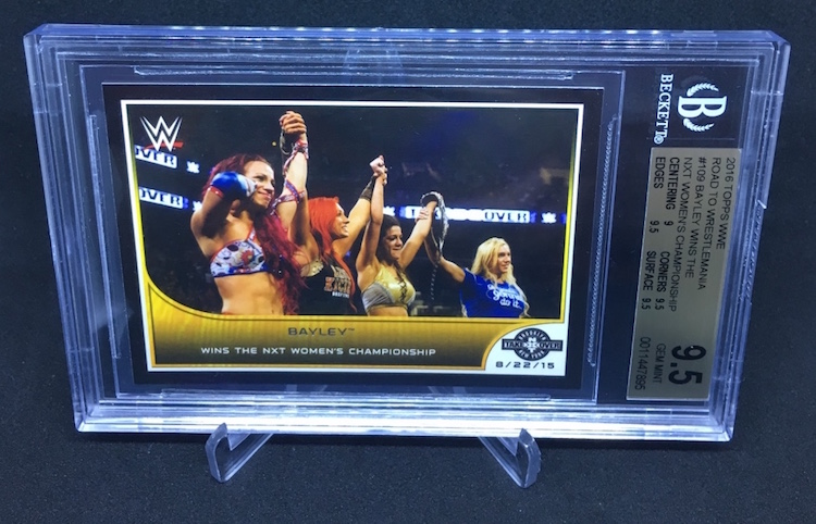 Reality Check: I was surprised on this one (I had figured 9s all day long here) but I guess it was cleaner than that. I think I pulled this one out of a recent cheap box after I was disappointed in a bulk lot of about 40 copies I picked up at pocket-change prices. Landing a 9.5 ends the small obsession I had with this one -- I'm not sure 10s can exist but I'd want one. Another reason I slabbed this one? This might be a cooler card if the long-rumored reunion as a faction happens at WrestleMania (or any time afterward). We'll see.