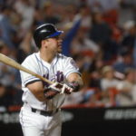 - UNITED STATES – SEPTEMBER 21: Mets’ Mike Piazza hits 8th inning homerun to lead Mets past Braves, 3-2, on patriotic and dramatic night at Shea as baseball returns to City. Win pulls Mets within 4 1/2 games of first-place Atlanta (Photo by Howard Earl Simmons/NY Daily News Archive via Getty Images)