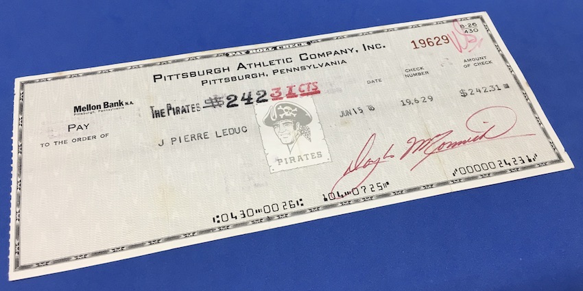 The Items: Jean Pierre Leduc 1978 TCMA The Minors card + signed 1978 Pittsburgh Pirates payroll check ... and more?