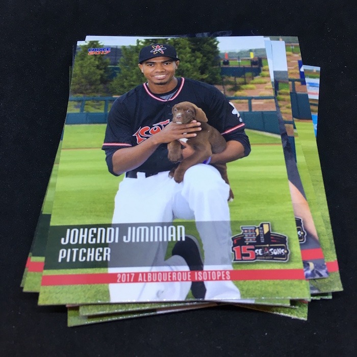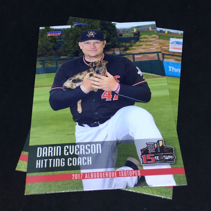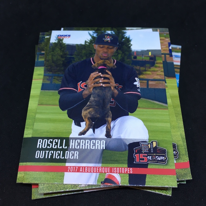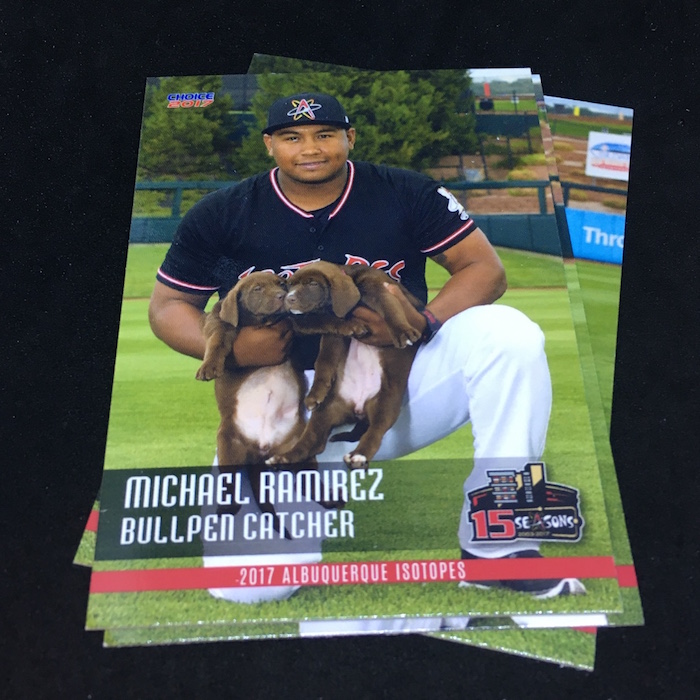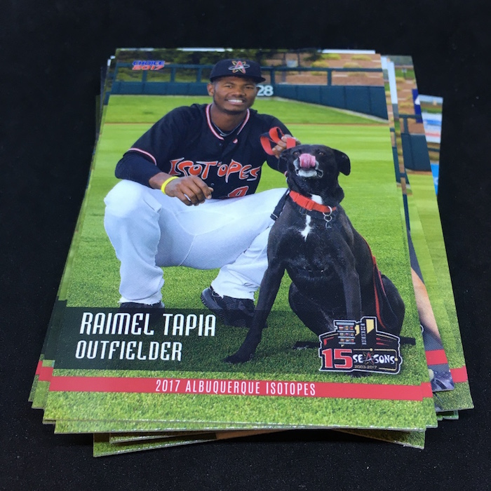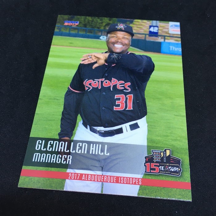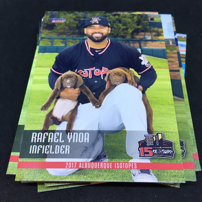 The Buzz About This One: So team photo day might be a chore for some squads, but the Albuquerque Isotopes tried something a little different this year for this set with nearly every player in this one posing with a pup -- and manager Glenallen Hill posing for his card with a rather large spider.