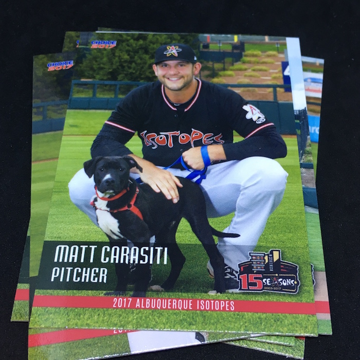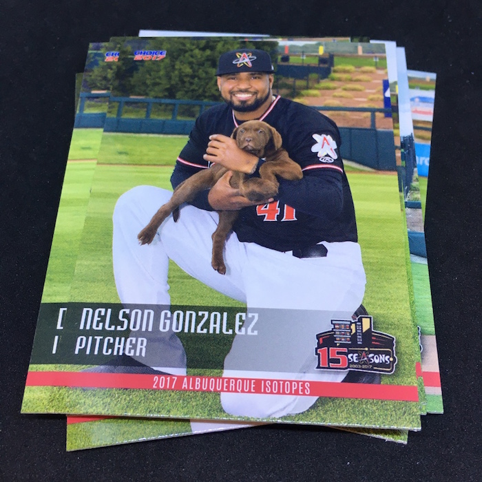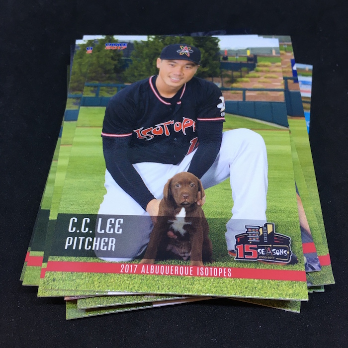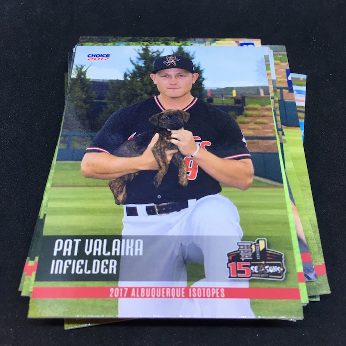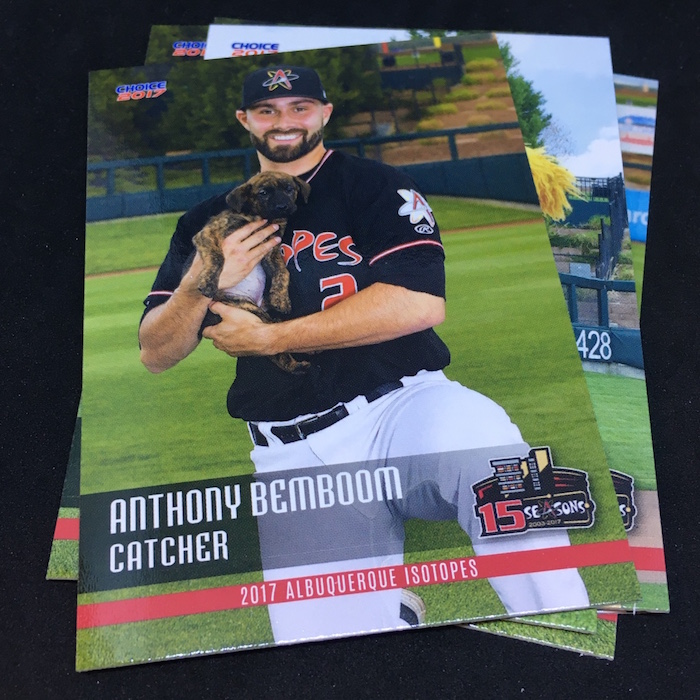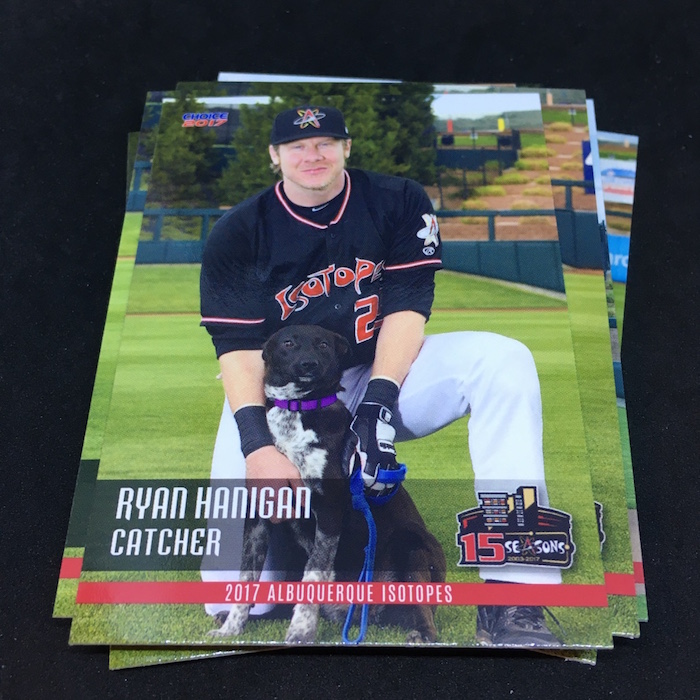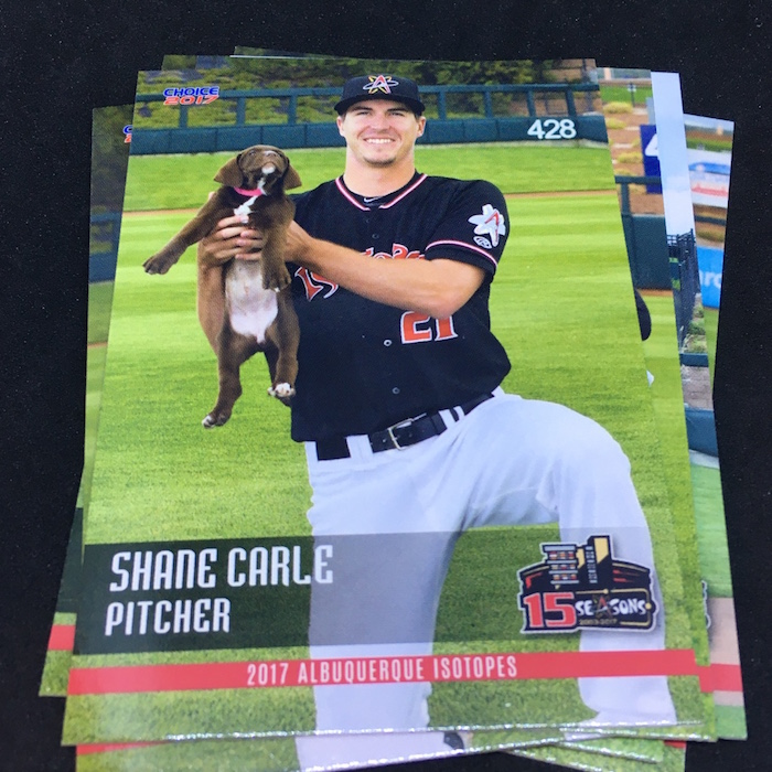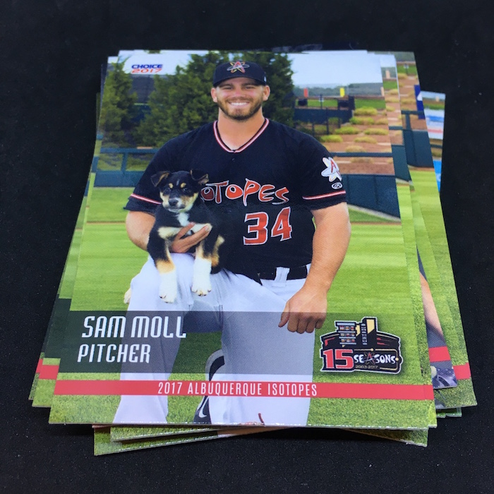 The Buzz About This One: So team photo day might be a chore for some squads, but the Albuquerque Isotopes tried something a little different this year for this set with nearly every player in this one posing with a pup -- and manager Glenallen Hill posing for his card with a rather large spider.