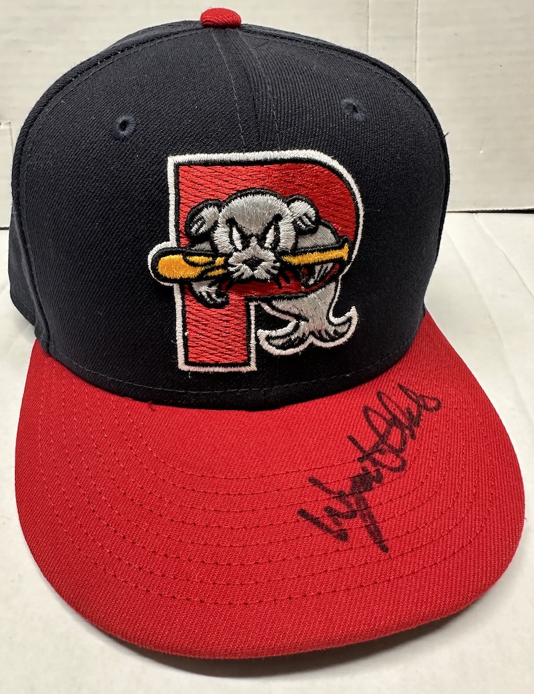 The Buzz On This: This trio of caps popped up online on the cheap (around/under $20 apiece) from a Maine seller who had a bunch of Sea Dogs stuff -- signed and unsigned -- after last season had ended and it all likely directly from the team given the volume and range of players. I bit on these three and one more you'll likely see here or in the Collecting Game-used series later. (I want to take some time and research that other one as it's a specialty cap where I could narrow down when it was used a little more precisely.) These had waited long enough to surface here, so I figured I'd add a game-used twist to this series this month. They're clean but marked and/or signed, but for a pitcher I'd not really suspect much dirt or grime but that didn't matter that much for me. Why did I buy? This guy's name seemed really familiar to Buzz -- and when I checked his Baseball Reference page, well, that full name (Spoiler: first name isn't Wyatt) seemed really familiar. The model of cap appears on one of his few MiLB cards here so that's cool ... at least to me.