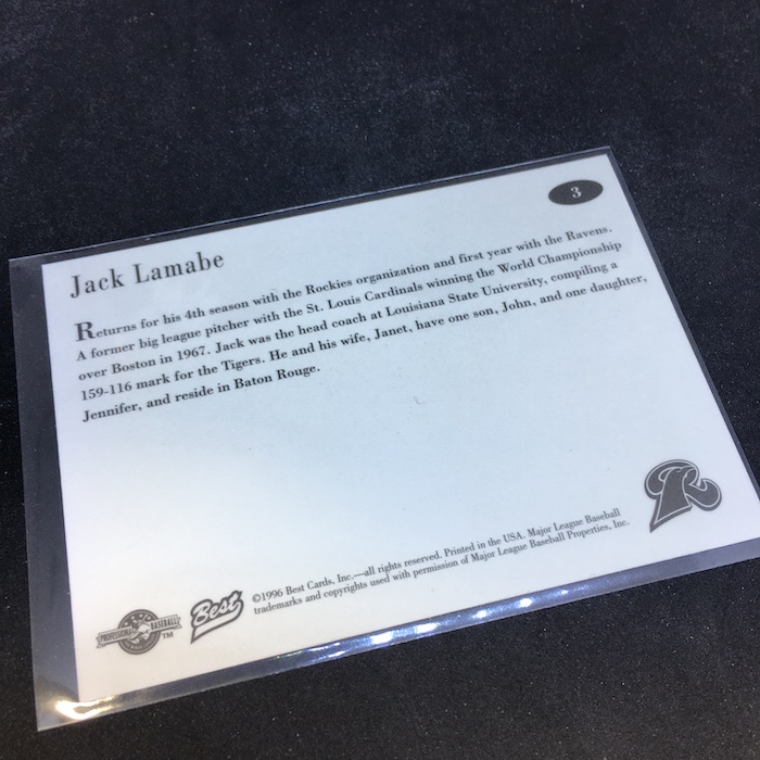 The Card: Jack Lamabe 1996 Best New Haven Ravens