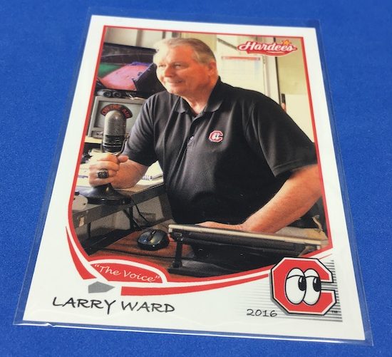 The Buzz On This: The design of this set borrows quite liberally from the 2013 Topps MLB release and this card showcases "The Voice," the Lookouts announcer who has plenty of time in the game and a number of cards. Ward has a trio of Hall of Fame nods to show for it, too, as he's in the Greater Chattanooga Sports Hall of Fame (2005), Southern League Hall of Fame (2015) and the Tennessee Radio Hall of Fame (2022). Here's a past look at his career. It's also not unusual to find team broadcasters in sets year after year as they, along with mascots, offer some cardboard continuity for fans from year to year.