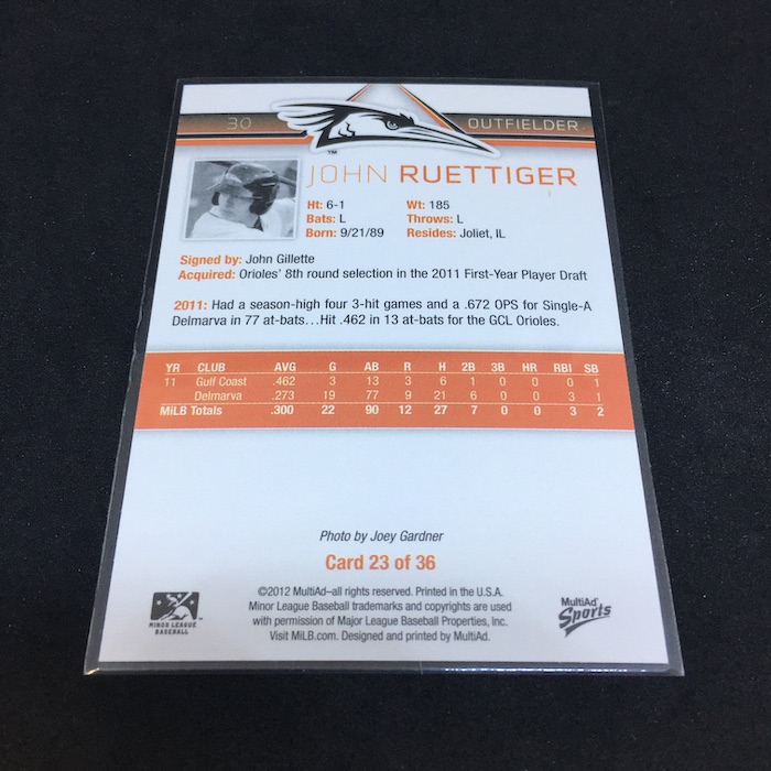 The Card: John Ruettiger 2012 Multi-Ad Delmarva Shorebirds #23