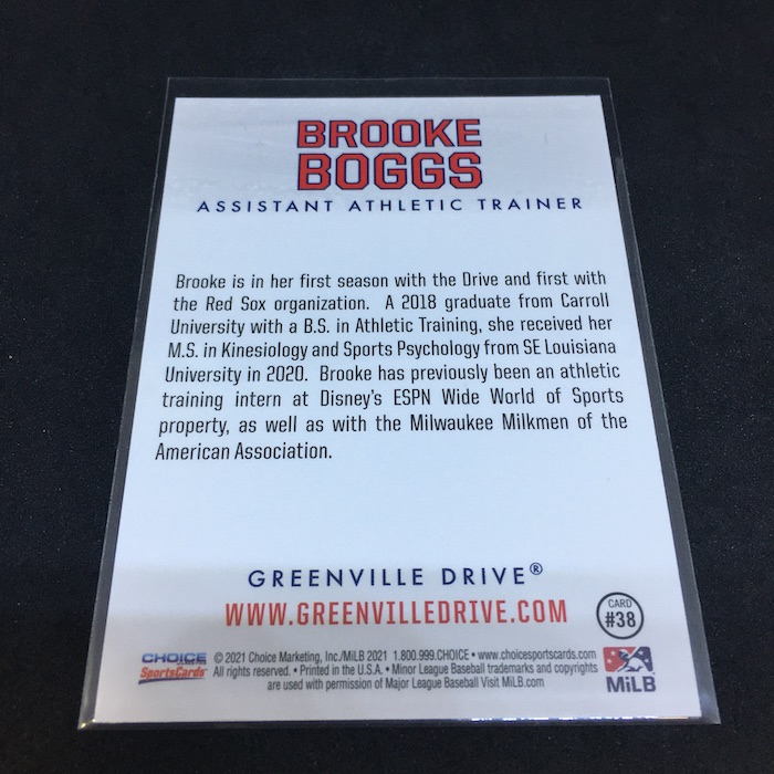 The Card: Brooke Boggs 2021 Choice Greenville Drive #38