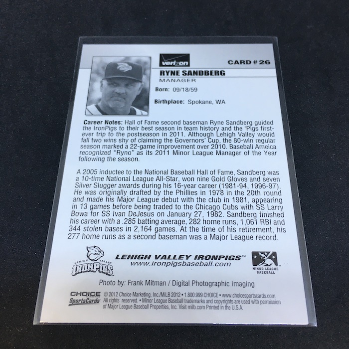 The Card: Ryne Sandberg 2012 Choice Lehigh Valley Ironpigs #26