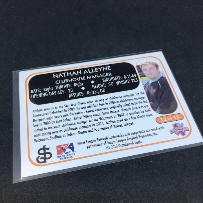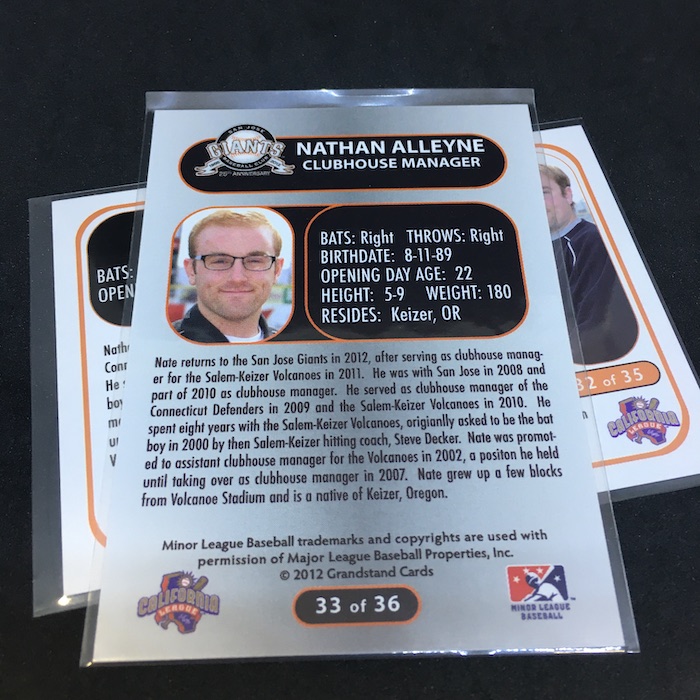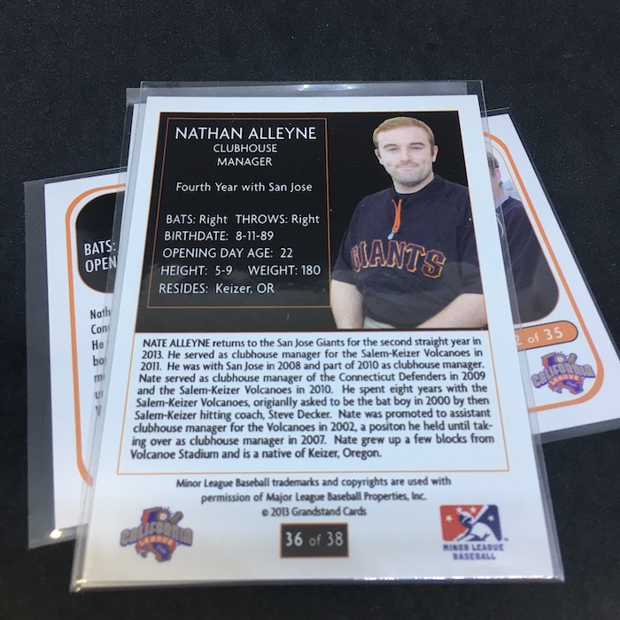 The Cards: Nathan Alleyne 2010, 2011-13 Grandstand San Jose Giants