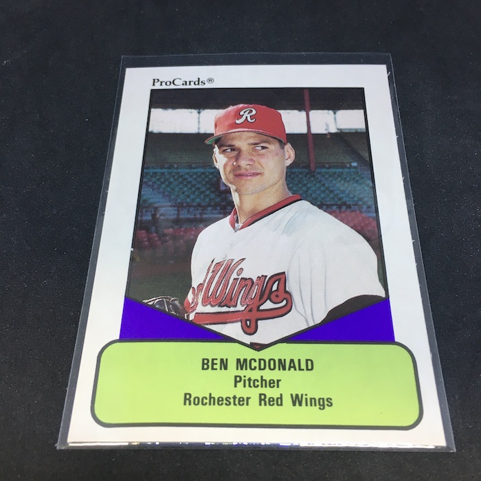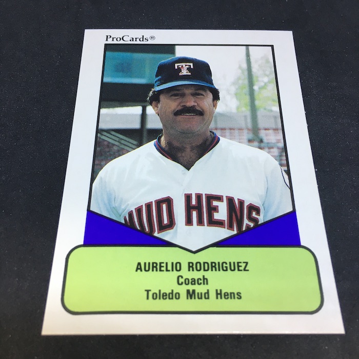 The Buzz On This One: These sat for some time in my stash of stuff before I even found the muster to go through them and take some pics of the "notables" here ... while a good 90-percent of what I found in a box of these packs went into the recycling bin. What's the deal? For a few years, ProCards would re-package its team set cards (MiLB cards were typically sold as a set, not packs) into mixed packs with a massive checklist (700 cards) filled with mostly commons but still some star power that, all these years later, isn't about cash with so much stuff made back then. So, why did I buy a box? It looked just like the box that had the cards from the previous year and that one has the pricey Keith Comstock baseball card that's a lot more memorable. I knew I botched my buy the second I saw the clear-ish plastic packs showing white cards underneath but ripped them anyway. If you were around cards then, you should know some big names here while others are names from the past who are coaches or managers or past MLB players. Sure, anybody can find a 1990 Donruss Ben McDonald ... but this one is cooler ... and Aurelio Rodriguez sure looks different than his 1969 Topps card here. If you know, you know.