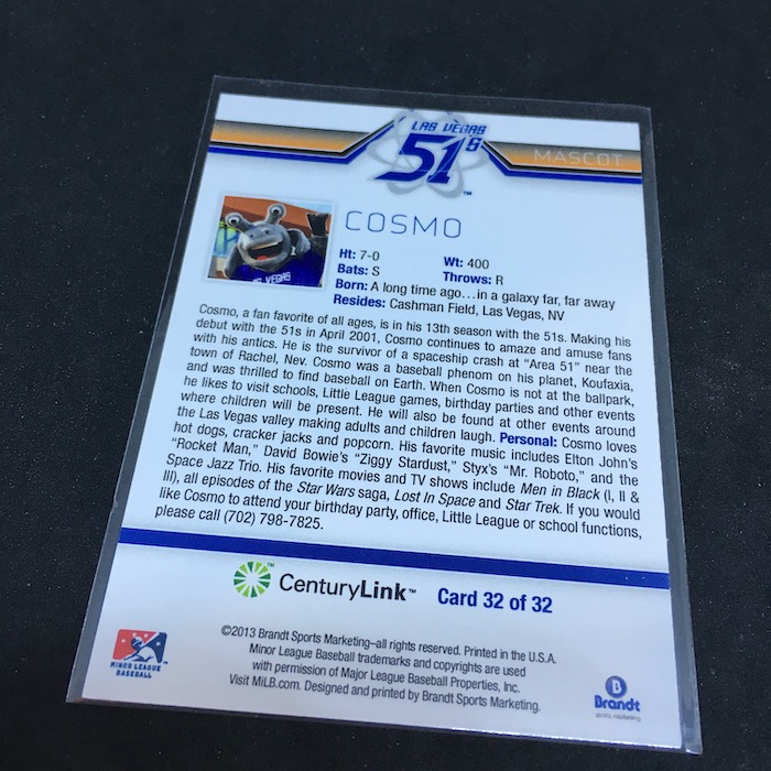 The Card: Cosmo 2013 Brandt Sports Marketing Las Vegas 51s #32