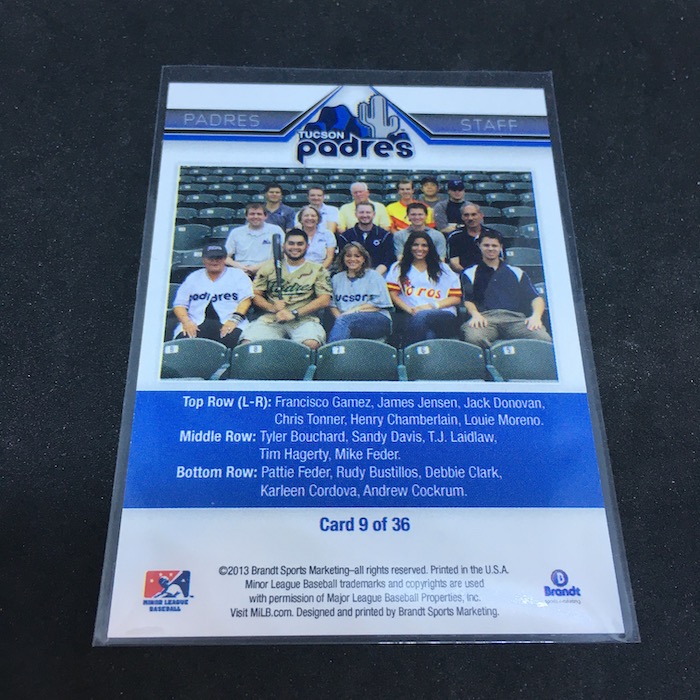 The Card: Padres Staff 2013 Brandt Sports Marketing Tucson Padres #9