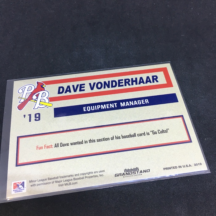 The Card: Dave Vonderhaar 2019 Grandstand Palm Beach Cardinals