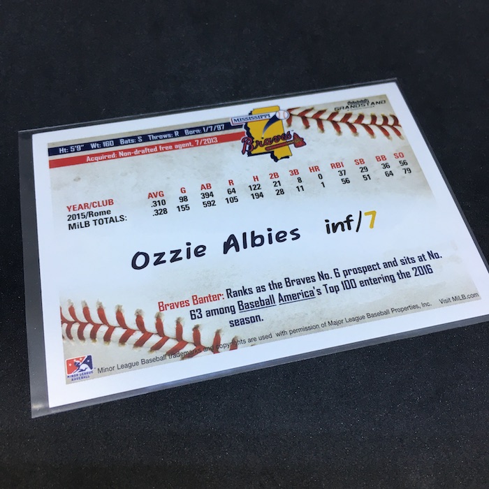 The Card: Ozzie Albies 2016 Grandstand Mississippi Braves #NNO