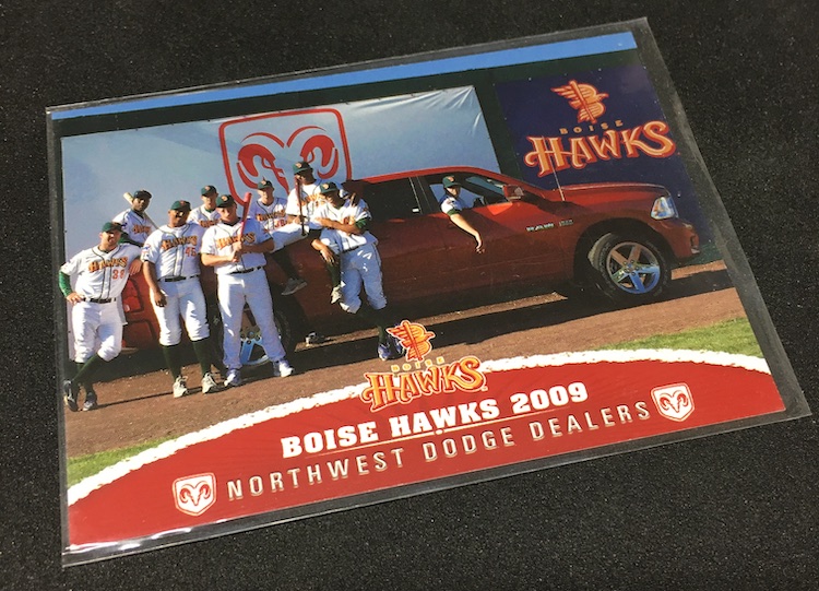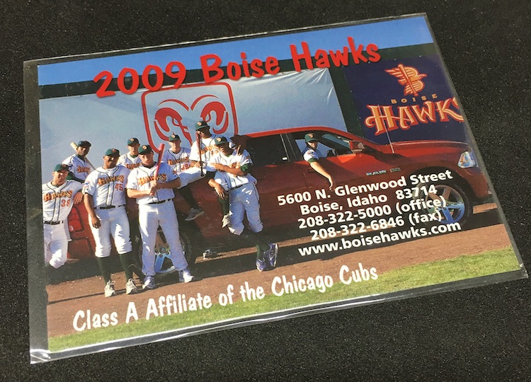 The Cards: 2009 Boise Hawks sponsor card, Muddy The Mudcat 2015 Choice Carolina Mudcats, Billy Bird 1989 Louisville Redbirds & Aaron Guiel 1996 Multi-Ad Lake Elsinore Storm