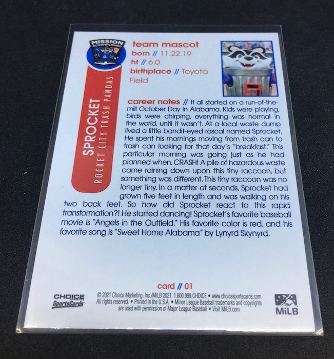 The Card: Sprocket 2021 Choice Rocket City Trash Pandas