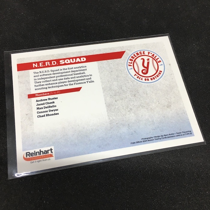 The Card: N.E.R.D. Squad 2021 Florence Y'alls (Andrew Rueter, Jared Cheek, Max DelBello, Connor Dwyer, Chad Rhoades)