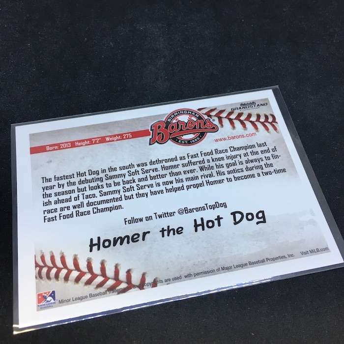 The Card: Homer The Hot Dog 2016 Grandstand Birmingham Barons