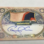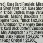 One of them in 2017 Topps Gypsy Queen? Nameless cards, aka missing nameplate cards. They're found one per hobby box at one in every 21 packs and if it's one of the short-print cards (Nos. 301-320) with this feature then the odds are a much steeper one in every 315 packs.