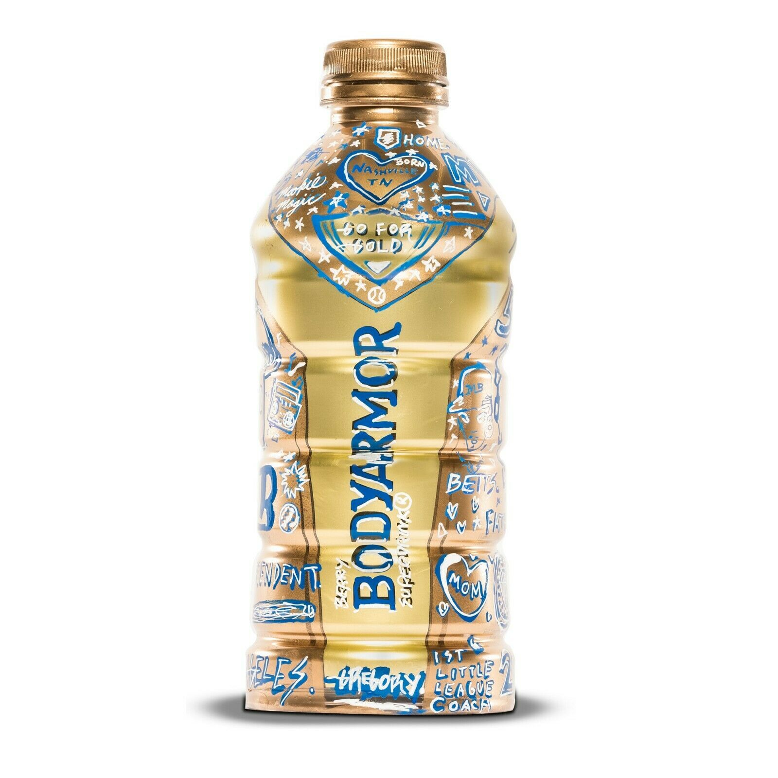 What's a painted and signed bottle of BODYARMOR Gold Berry Superdrink worth?