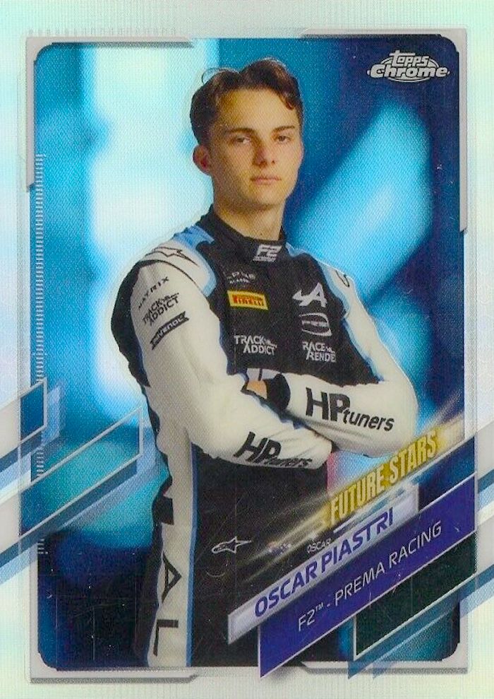 Piastri appears on almost 150 cards in 2021 Topps releases -- a full array of base, parallels, inserts and also autographs in 2021 Topps Chrome F1 and 2021 Topps F1 releases.