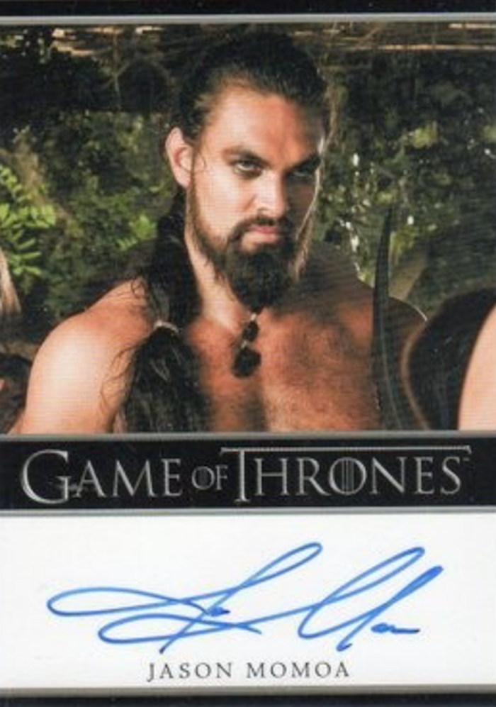 Some of them found in this new series haven't signed in the past set often before. Clarke, for example, has gone on to have roles in Stars Wars and Terminator films and only previously had Thrones autographs in the Season 1 and Season 2 sets. Momoa, who was most recently seen as Aquaman in a few DC Comics films, had ink in Season 1 and in the Valyrian Steel release. Christie had ink in Season 2 and Season 3 sets but has more than 80 different auto cards from her time with Star Wars -- with more likely on the way there.