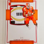 Those are the high-end brands that will be arriving this coming card season from Panini America with a collegiate twist as the company pulled back the curtain on a number of the cards before they are signed in less than two weeks at the NFLPA Rookie Premiere.