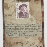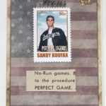 This time, there are three base cards per box, one Pieces of The Past Relic (cut from a document), one In The News Relic (a clipping from an era newspaper or magazine), and one additional Relic. That lineup can include stamp cards, dual hybrid cards and more. Case purchases also will include a 1/1 promo bonus pack with all kinds of possibilities.
