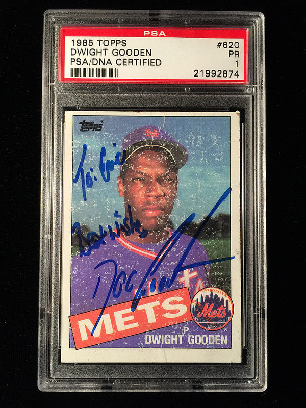 The favorite: An autographed PSA 1 1985 Topps No. 620 Dwight Gooden Rookie Card