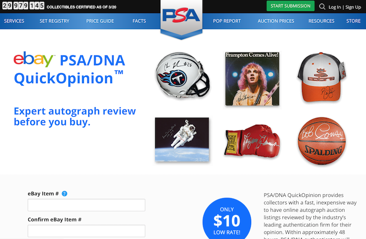 PSA/DNA simplifies QuickOpinion service for eBay items