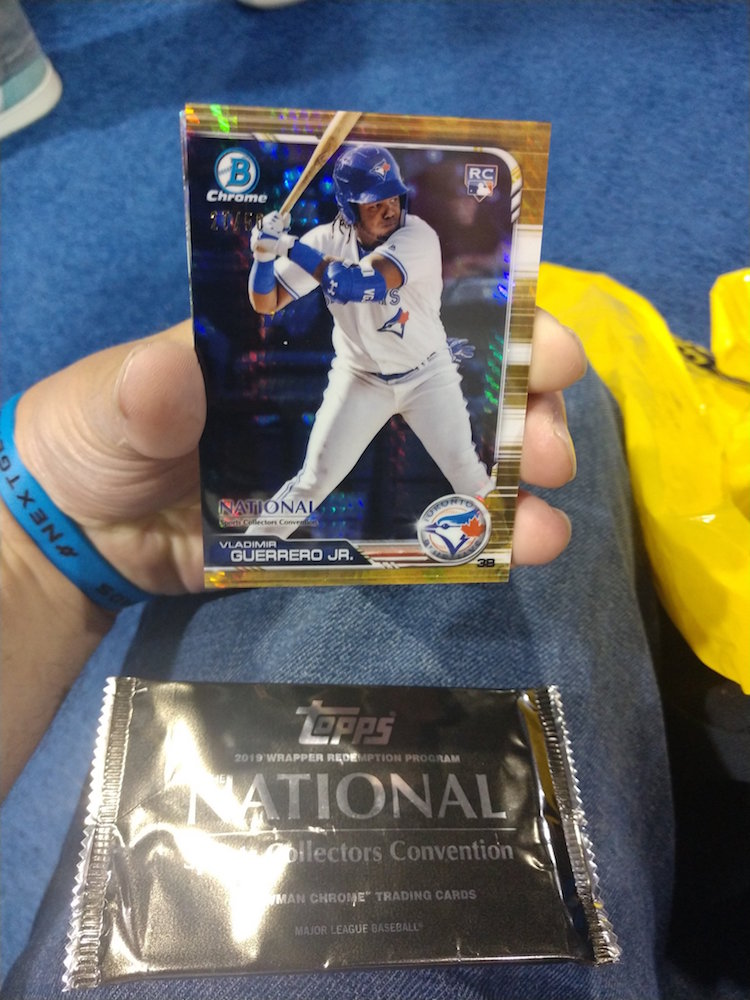 - Via @AndrewRSchulze … I pulled this #VladJr card out of a @Topps promo pack at the @nsccshow. #NSCC2019 Sadly, there’s giant crease on the back.