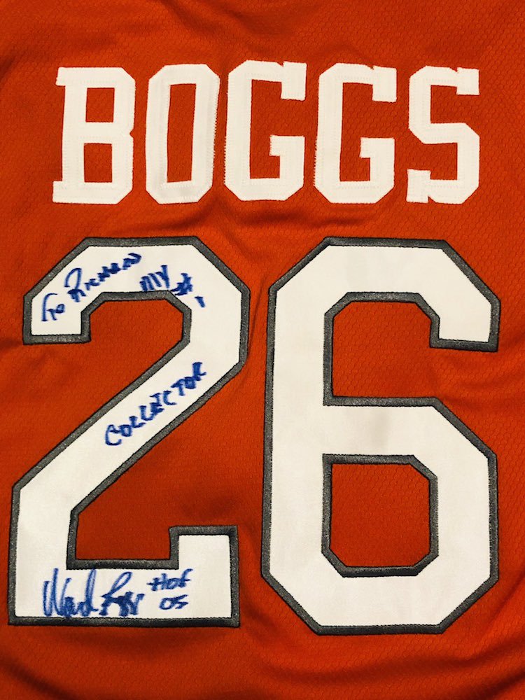 - Via @boggs328 … Closer look at this awesome celebrity softball game worn Field of Dreams jersey from #WadeBoggs with the best inscription ever! 😉🐔🐓🍗⚾️
