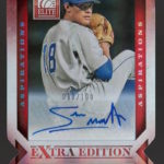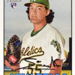 His first autographs can be found in just a handful of 2013 prospect releases -- Panini Prizm Perennial Draft Picks, Elite Extra Edition, Leaf Memories, Leaf Metal Draft and Leaf Trinity. That's it for the former first-round pick of the Kansas City Royals who was traded to Oakland as part of a deal for Ben Zobrist in 2015. He has just one autographed card in 2014 -- an Elite Extra Editon Back to the Future Signatures card limited to 49 copies -- and has just two other autographed cards from Panini America after that. He's never signed for Topps.