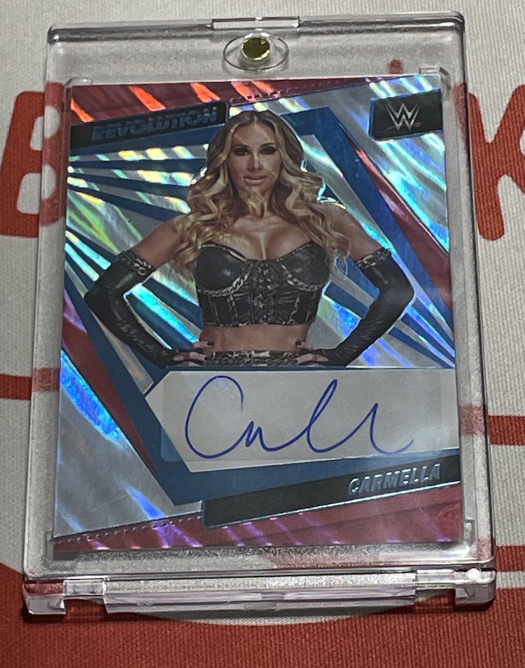 - Via @BrodyTk … Picked up a box of 2022 @wwe Revolution at the show and pulled a Lava 1/10 Carmella auto 🔥👊🏼 Straight into that @IronguardSupp One-Touch #thehobby #wrestlingcards