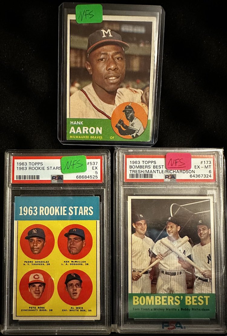 - Via @tr1ppn … Day 0 #NSCC2024 pickups! Completed my 1963 topps set with the Aaron and rose, and the bombers is an upgrade.