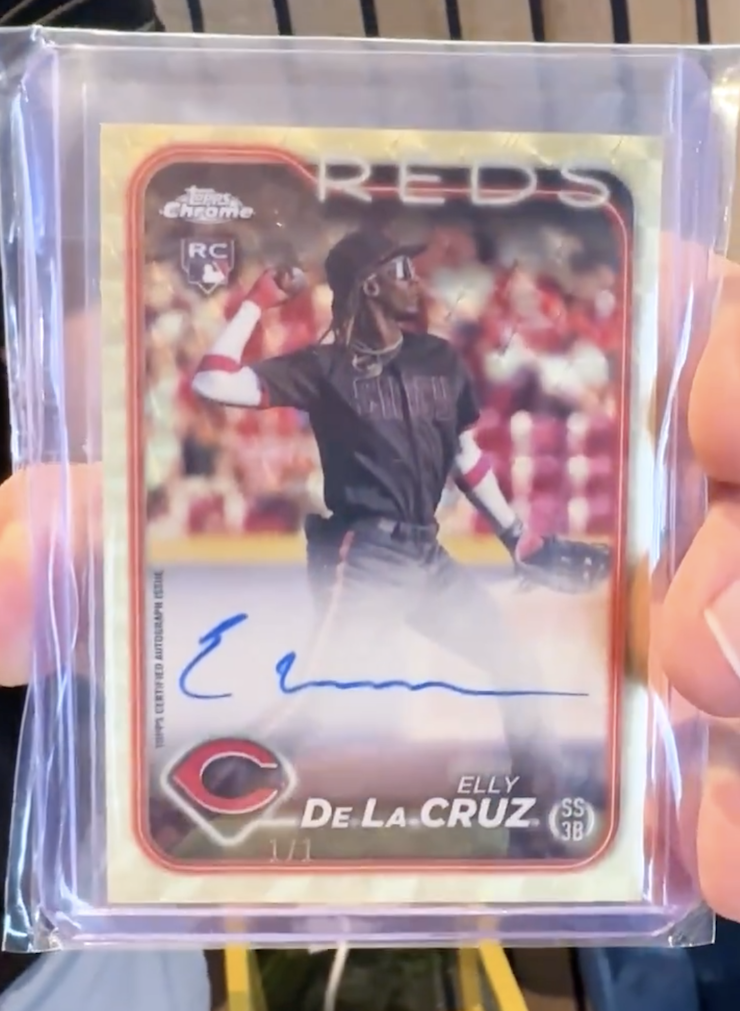 - Via @GoldinCo … 👀Look what was JUST CONSIGNED at our National Booth 5018! 👀 This Elly De La Cruz Card was pulled by @graybos_cards & Consigned at our Booth. It’s off to get Graded before it will be in our August Elite